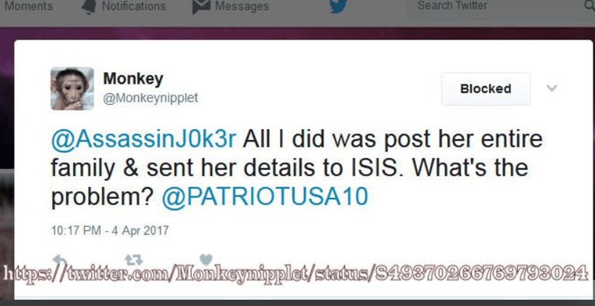 - “There’s an easy solution for terrorism. Deport the Muslims. Starting with your pathetic self.” (some guy from Florida tweeted this one)