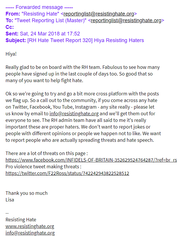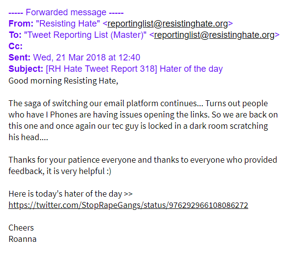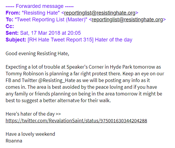Many of the negative things insinuated and imposed about MEND as an organization are factors that play into TellMAMA as well. For example, at one point the documentary digs up old tweets from people involved with MEND. They point the finger of alleging antisemitism at it. However as you’ll see later on when we talk about Alison Chabloz, Fiyaz Mughal’s hands aren’t exactly clean in this regard either. A lot of a later page in this essay is dedicated to exploring the links to extremist activities that Mr. Mughal and his allies have. The Channel 4 documentary spins things on this “bad behaviors” axis against MEND, to make it appear as if the relationships MEND has with UK police is a bad thing. That it’s a shocker that the authorities would dare to be seen with MEND at all.