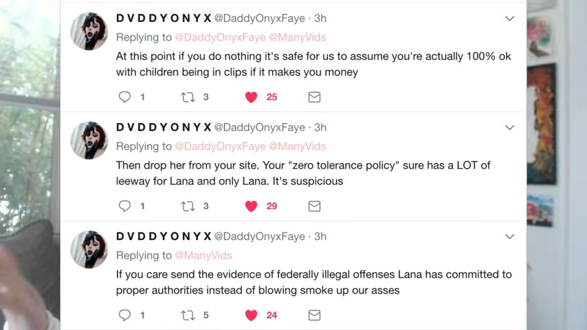 “Its obvious this is all done because the 3 main members involved have an agenda against me. One is a guy who cant take rejection, and another is a model who got exposed for not telling g/g partners about her STD and the third is a model who became afraid of being exposed for trying to poach my tippers on my own teamspeak,” Lana wrote on Twitter.